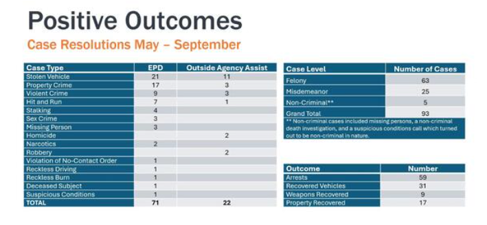 EPD detectives watched the vehicle and the following day, October 9, detectives followed it north to several other cities including Corvallis, Salem, and Keizer where it was joined by two other vehicles.