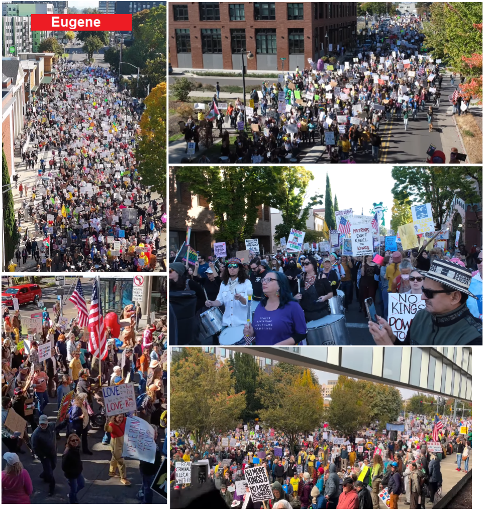 Several thousand people participated in the ‘No Kings’ rally and march in Eugene on Saturday. Estimates vary for the crowd size but average 5000. The march, in dozens of cities large and small across Oregon, were part of a national day of protests that included more than 2,600 events and drew millions nationwide.