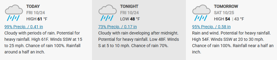 A decent amount of rain is also expected with this system which, combined with gusty winds, could lead to downed trees. Winds are expected to be strongest along the coast and along higher terrain. Remember to prepare for hazardous weather ahead of time.