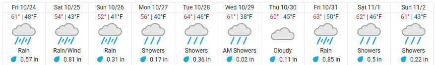 However, it will be wet, with showers expected from Friday through Sunday in Klamath County, on into the Willamette Valley and very rainy in Portland. Check TripCheck too.