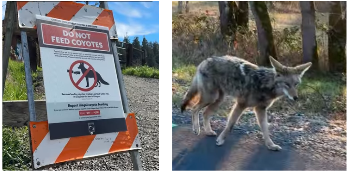 Feeding coyotes and some other wildlife is prohibited by state law. Park visitors are encouraged to document and report anyone spotted feeding wildlife, leaving food for wildlife, or encouraging wildlife to approach people or pets to Lane County Parks at 541-682-2000 or to Oregon State Police.